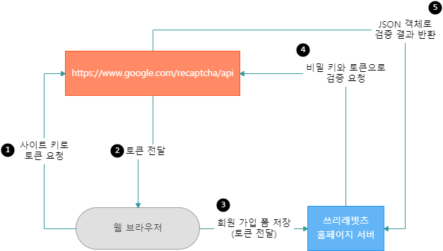 - captcha code 는 인증된 토큰이 아니다. 반드시 서버사이드에서 검증하는 과정을 거쳐야 한다.