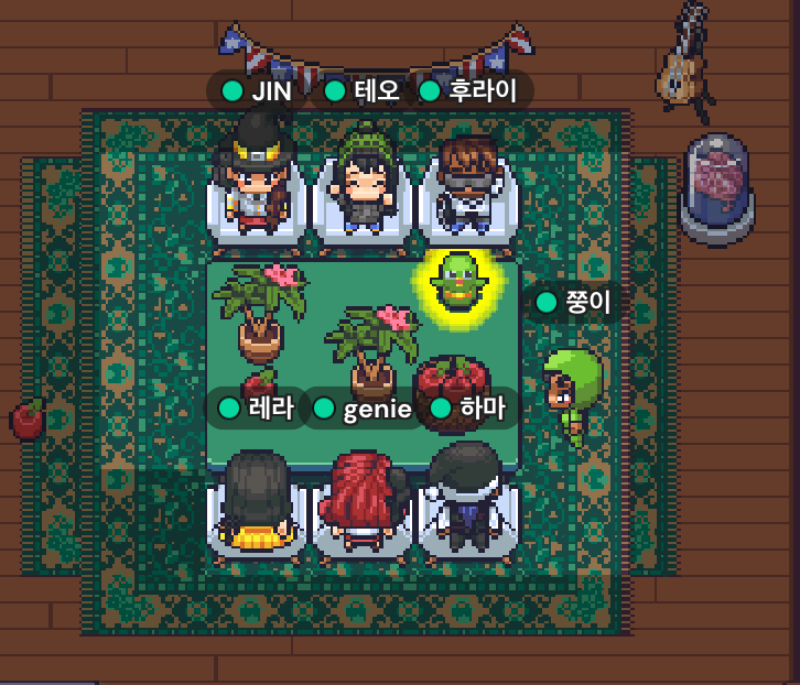전날 새벽에 잠에서 깨 새벽 5시까지 코딩을 하다 잠든 터라 10시쯤 뒤늦게 게더타운에 접속했는데, 전날 나와 같은 시간까지 페어를 하고 있던 지니와 레라가 계속 작업을 하고 있어서 깜짝 놀랐다. (두 분도 잠깐 잠을 주무시고 왔다고 하는데 정말 대단..)
