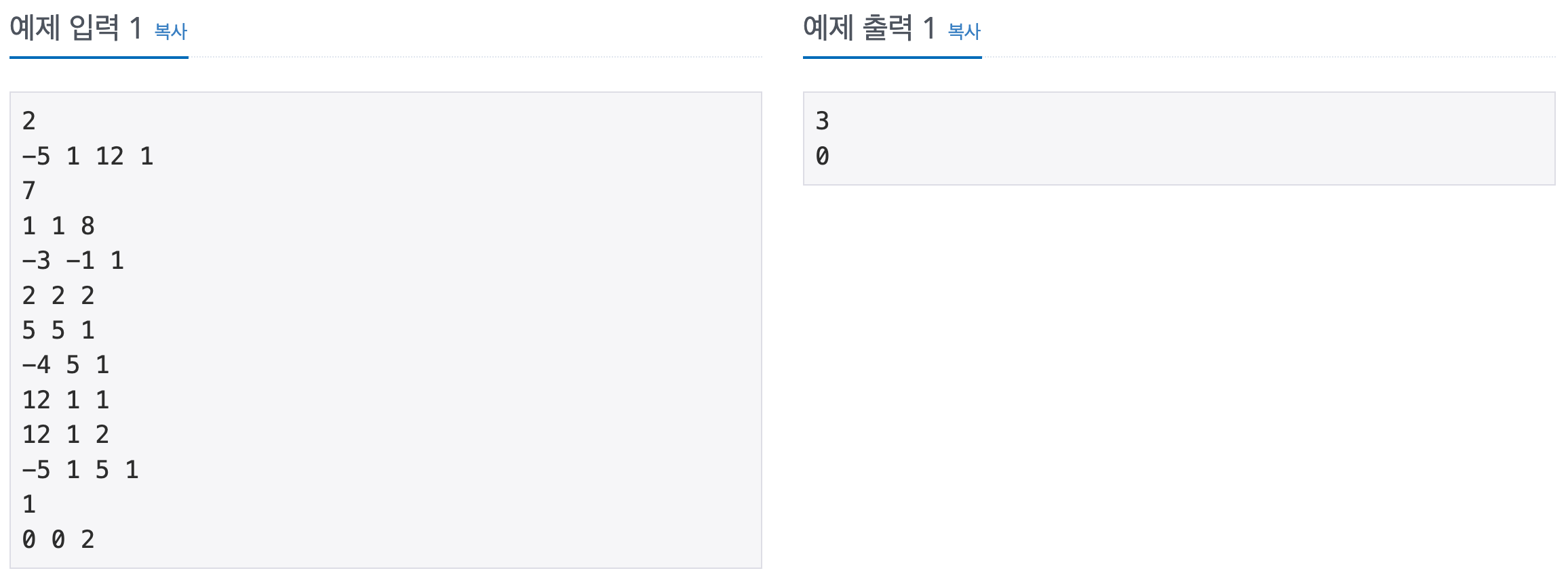 - 둘 다 값이 true 라면 출발점과 도착점 모두 원의 바깥에 위치하고, false 라면 원의 내부에 위치하므로 원을 지나지 않아도 된다.