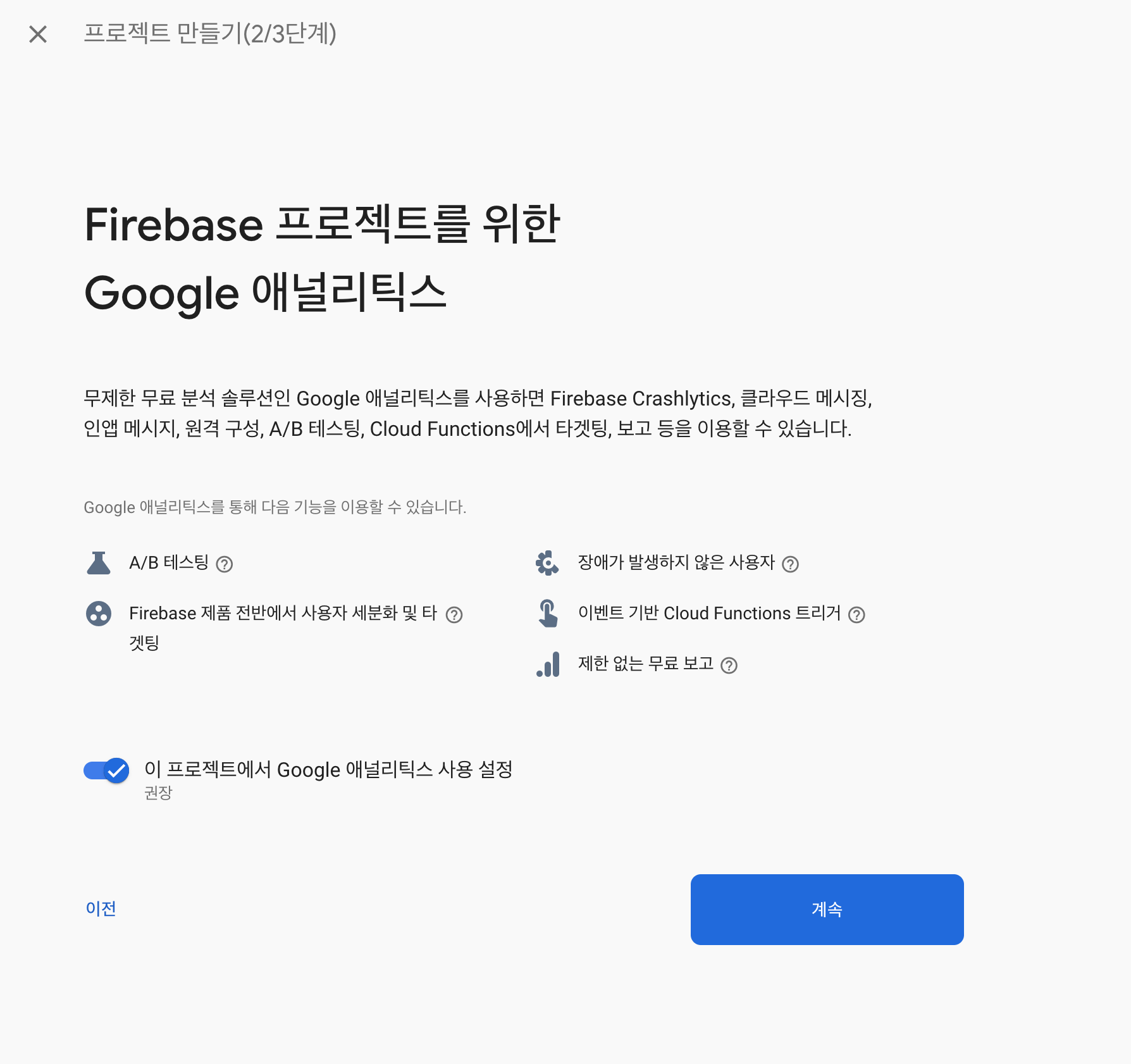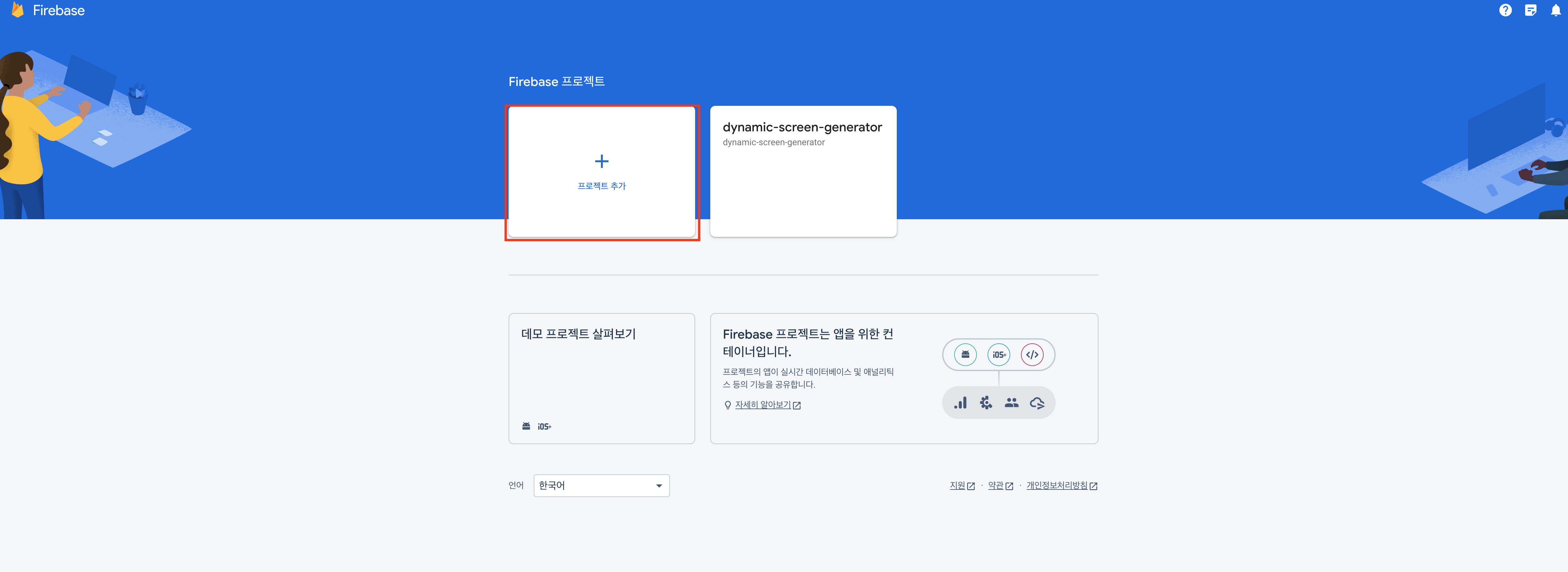 2. 파이어베이스를 적용하기 위한 프로젝트를 추가한다.
