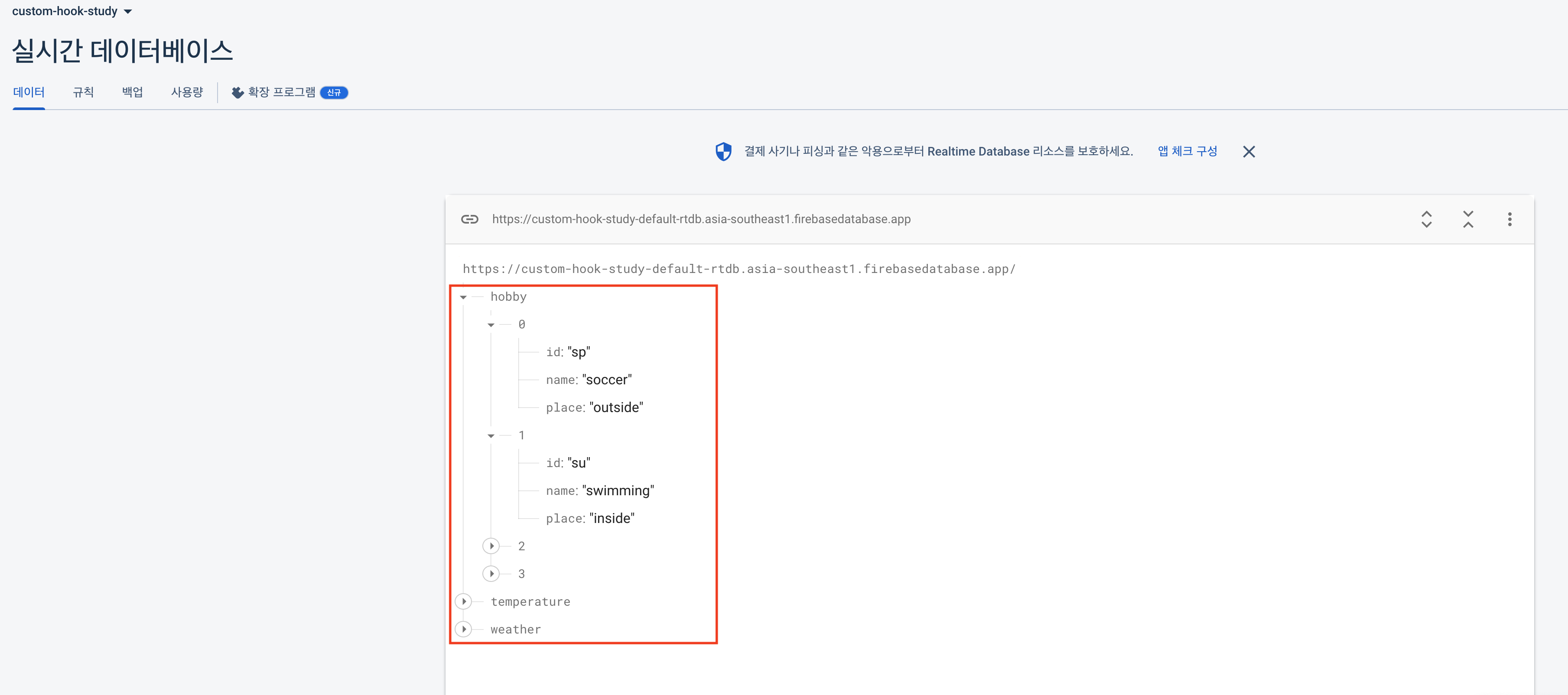 4. Realtime Datebase 생성