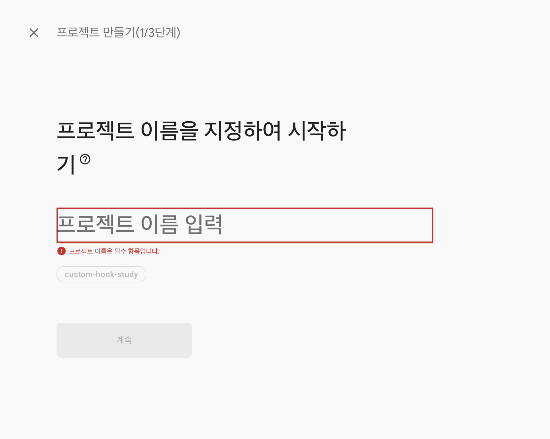 3. 프로젝트 이름을 입력한다.