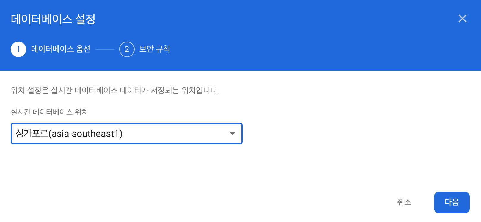 데이터베이스 위치는 미국, 벨기에, 싱가포르 3군데가 있었는데 아무래도 거리에 따라서 속도가 차이가 나지 않을까 싶어 가장 가까운 싱가포르를 선택했다.